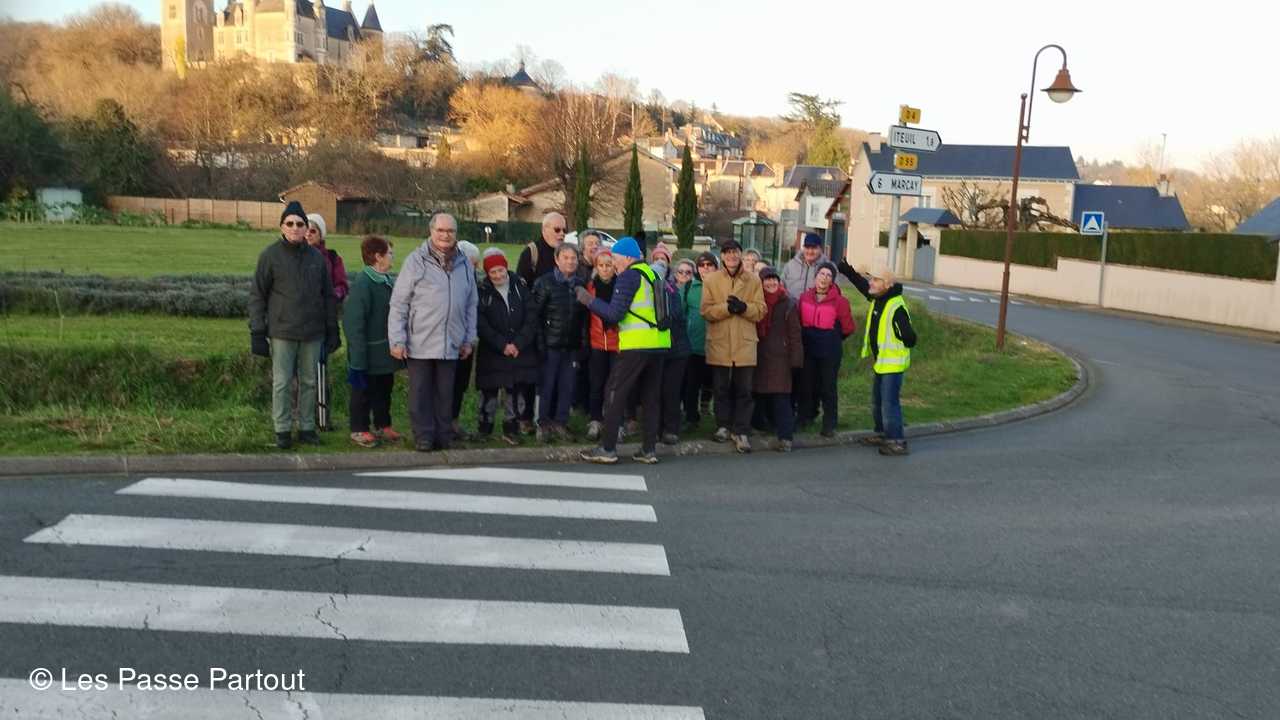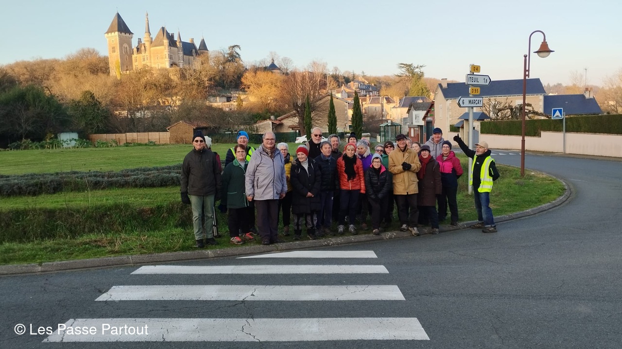 25 marcheurs pour cette randonnée ensoleillée mais froide, vers Mougon, la Gruzalière, la Clémençalière. Un passage un peu délicat !